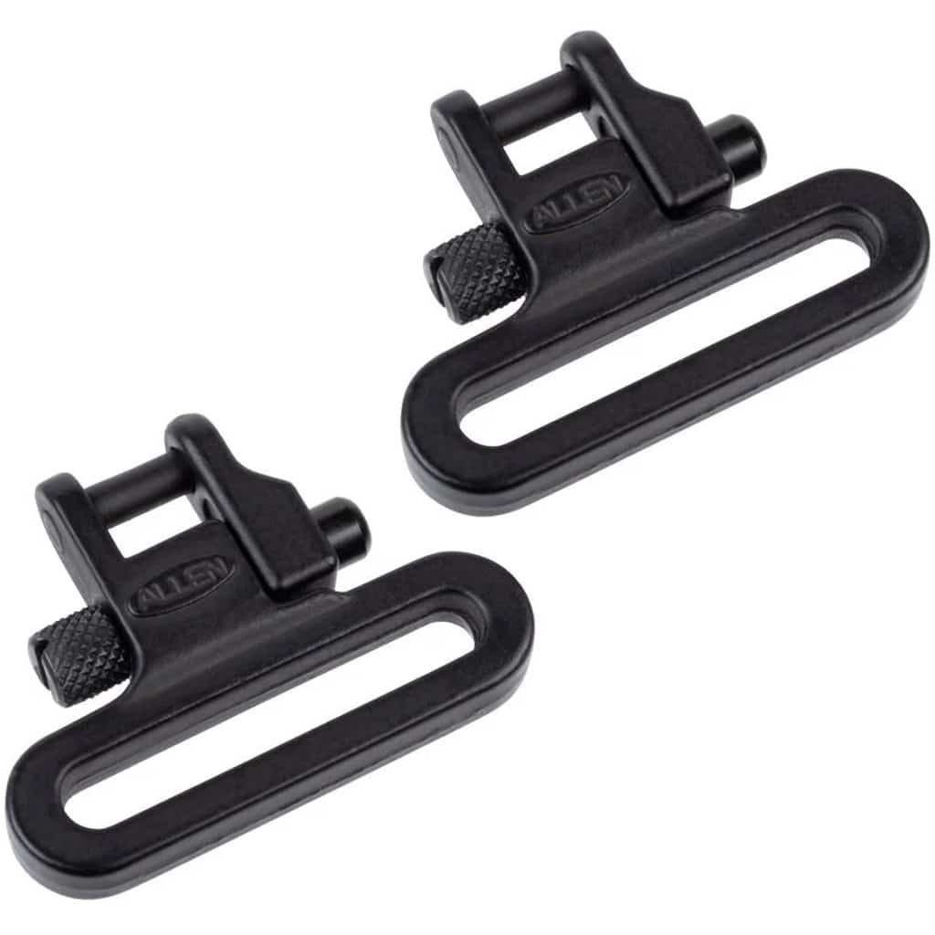 The Allen Magnum Swivel Set (1.25-inch) delivers rugged reliability for securely attaching slings to your firearm. Built from forged metal and scientifically tested to hold up to 500 pounds, these swivels are designed for heavy-duty performance in the field. A knurled threaded locking screw ensures a tight and secure fit on sling swivel studs, minimizing the risk of accidental detachment. With a quiet and solid design, this swivel set is ideal for hunters and shooters who demand strength and stealth.