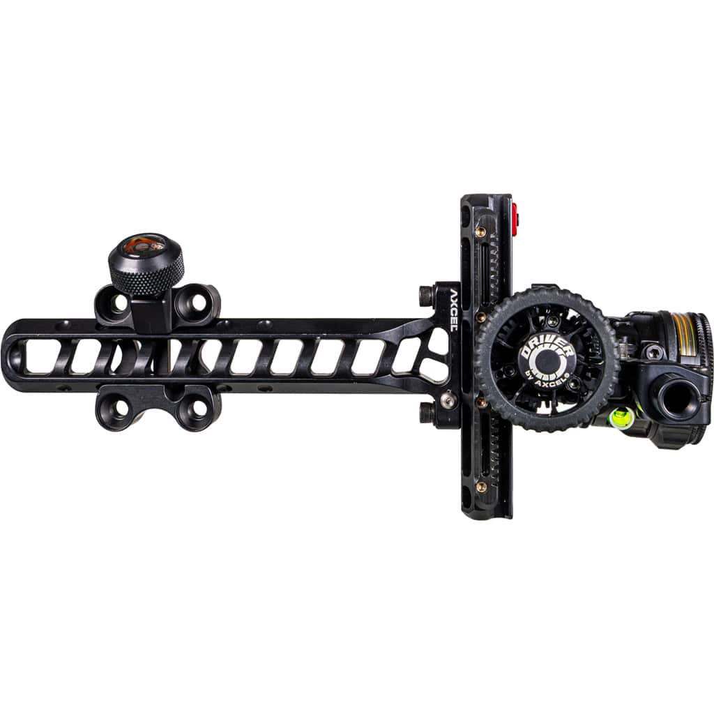 The Axcel Driver Plus Slider Sight with AVX-31 Scope and .019” green and red Ranger pins offers ultralight precision in a rugged, field-ready package. Weighing just 8.6 oz and crafted from high-grade aluminum, this dovetail-mounted sight is one of the lightest slider systems available without compromising strength. The AVX-31 scope features dual micro-adjustable pins in a vertical stack configuration, supported by a rheostat for controlled pin brightness and a Micro Deadstop for fast yardage resets.