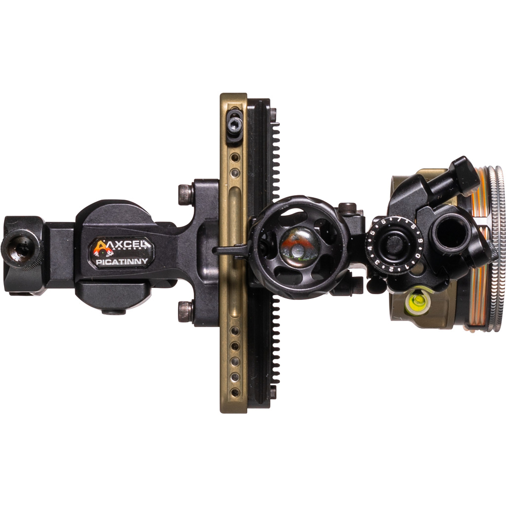 Step up your archery game with the Axcel LANDSLYDE Picatinny Slider Sight Tactical Bowhunting (BH) model. This sight boasts an AVX-41 scope with the Ranger Double Pin feature, utilizing both green and red fibers for superior visibility and precision. Engineered for quick and silent adjustments, it includes smooth gear action, a rapid adjust knob, and true 1st, 2nd, and 3rd axis adjustments for meticulous alignment. The removable sight block ensures repeatable accuracy, while the two individually adjustable pointers provide versatility for different shooting scenarios. The sight comes with 8 double-sided metal scales, offering 16 total configuration choices.