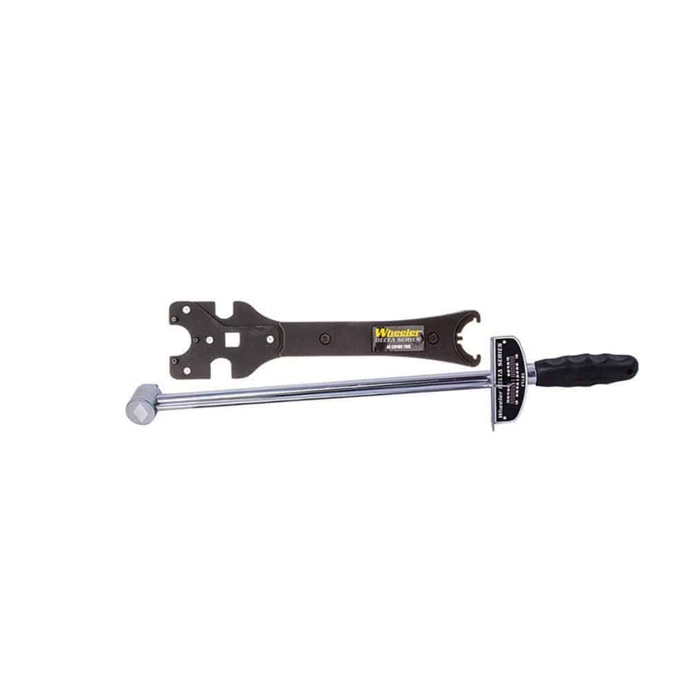 Cover most of your AR-15 service needs with a single tool. An innovative layered and laminated stamped steel construction makes the Delta Series Combo Tool the most durable AR tool available. This construction method allows the use of hardened steel barrel nut pins designed to hold up to heavy torque requirements. A cut out for a ½? drive allows the tool to be used with a torque wrench or ratchet driver. Profiles for buffer tube lock nut and flash hider are included. The addition of a bit driver and bit holder with six common bits adds to the versatility. Includes a torque wrench to ensure proper barrel nut torque for maximum accuracy.