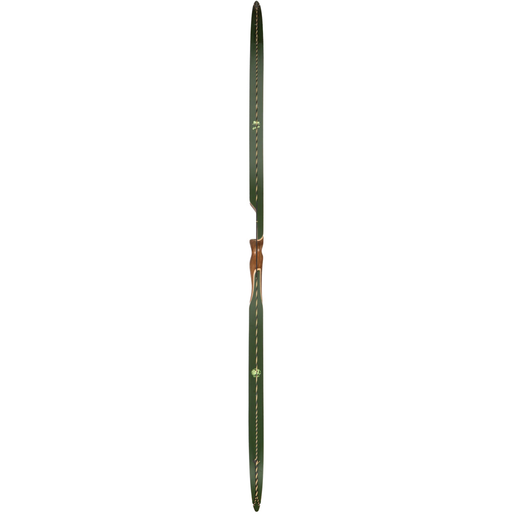 The Bear Grizzly – 90th Anniversary edition combines traditional craftsmanship with modern materials. Known as the Green Glass Grizzly, it features a shedua and green glass construction, offering archers a durable and high-performance bow. The design includes maple limbs reinforced with green fiberglass for resilience, and it’s equipped with a leather side plate and bear hair arrow rest for an authentic touch.