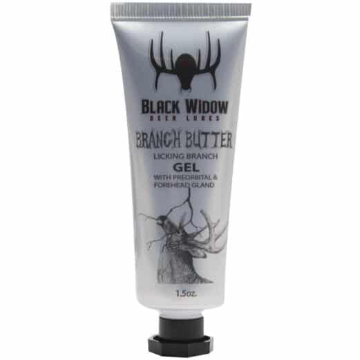 Black Widow Deer Lures Branch Butter is a pre-orbital and forehead gland scent gel designed to mimic the presence of an intruder buck. Deer rely on scrapes and licking branches to communicate and establish hierarchy, and this long-lasting gel helps trigger that behavior to your advantage. Applied to existing licking branches or mock setups, it encourages territorial responses, rub activity, and consistent visits from bucks throughout the season. Collected and bottled fresh each year, it provides an effective way to pattern deer and keep them returning to your hunting area.