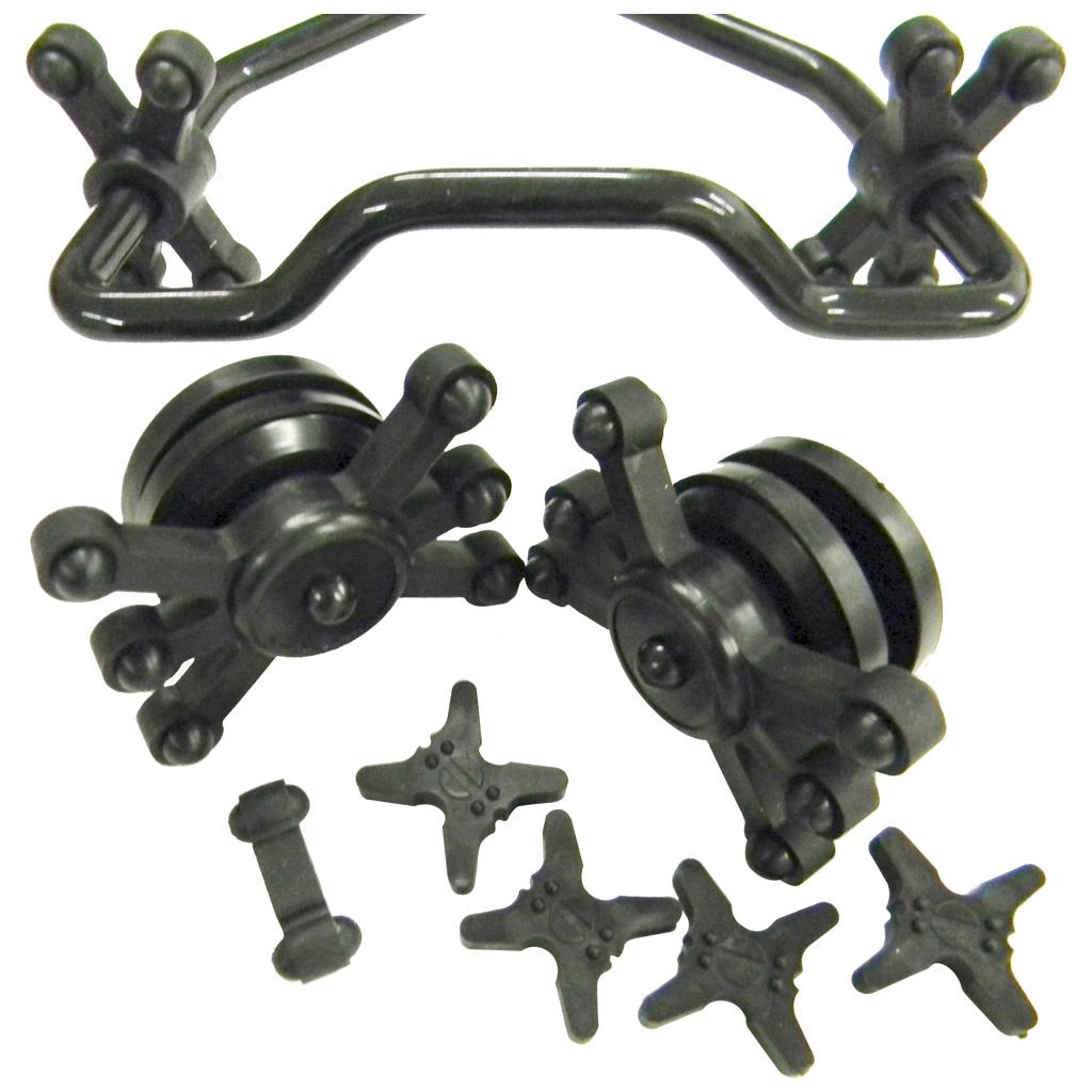 The most complete kit. It has 2 universally sized split limb dampeners, a pair of stirrup dampeners, 4 of the heavy duty crossbow string silencers, and 1 bolt spring dampener. This kit comes in black and everything can be installed without a bow press except the string silencers. The stirrup dampeners go on easy if your stirrup has a screw to detach it from the crossbow, then you simply unscrew it and slide these dampeners on. The limb dampeners are universally sized to fit gaps between 3/8″ up to 1 1/8″ wide.