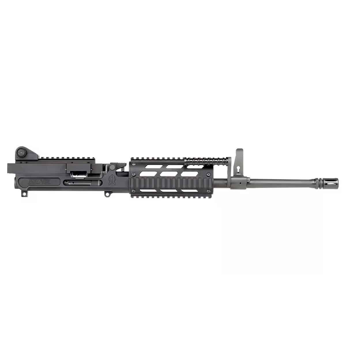 Once installed, the patented MCR upper receiver system can be user-configured in seconds without tools to adapt to virtually any mission profile. Specifically designed for responsible armed citizens, law enforcement and professional security personnel who wish to upgrade their rifle or carbine to MCR performance and capability standard features include gas-piston operation for extreme reliability in adverse conditions a 16.25″ quick-change (3 seconds) barrel system and a MIL-STD 1913 co-planar hand-guard with rail-interface system for the mounting of optics and modern accessories. Spanning the capability range from the optic ready carbine through a lightweight support rifle theMCR accepts standard box type AR15/M16 magazines or M27 linked ammunition at operator discretion, permitting unprecedented firepower and weapon flexibility.   KEY FEATURES Drop-On Upper Receiver Assembly that upgrades your AR15/M16/M4 type lower receivers or rifles 5.56 x 45mm NATO 16.25” Quick-Change Barrel 1:7” RHT, ½”-28 TPI  Short-Stroke Gas Piston Operation Dual-Feed™ – Accepts ALL AR15/M16 Magazines & M27 Linked Ammunition Precision Machined 7075-T6 Billet Upper Receiver, Feed Cover and Charging Handle Precision Machined Billet Steel Feed Tray  Finish – Manganese Phosphate & Type III, Class 2 Hardcoat anodize – Black Full-Auto Bolt Carrier Handguard Style – MIL-STD 1913 Rail  Adjustable Sight Set Quick-Change Barrel Handle Ships with Main Action Spring, Bolt Catch, Carbine Stock Spacer, (100) M27 Links & Operator’s Manual