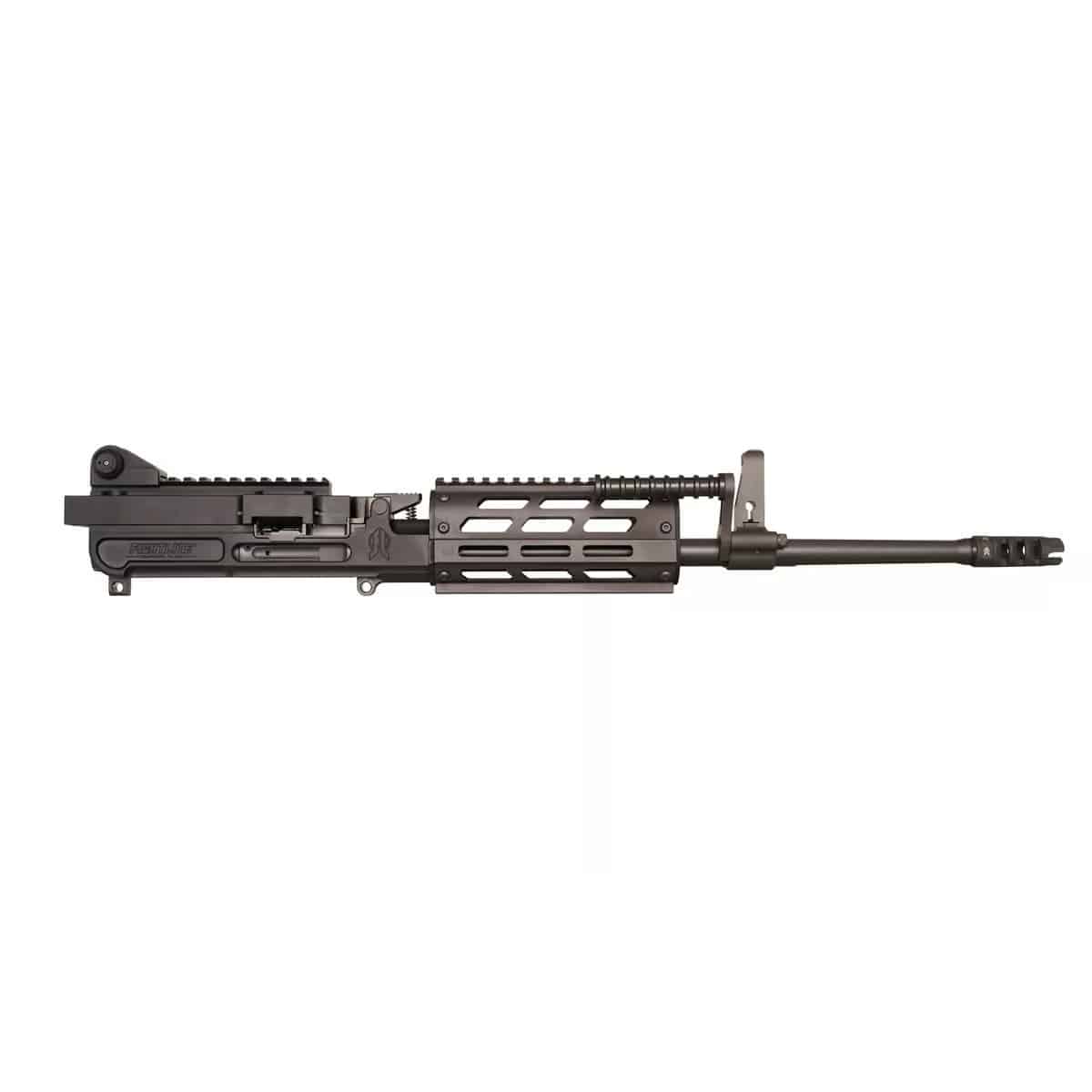 Once installed, the patented MCR upper receiver system can be user-configured in seconds without tools to adapt to virtually any mission profile. Specifically designed for responsible armed citizens, law enforcement and professional security personnel who wish to upgrade their rifle or carbine to MCR performance and capability standard features include gas-piston operation for extreme reliability in adverse conditions a 16.25″ quick-change (3 seconds) barrel system and a M-LOK co-planar hand-guard with rail-interface system for the mounting of optics and modern accessories. Spanning the capability range from the optic ready carbine through a lightweight support rifle the MCR accepts standard box type AR15/M16 magazines or M27 linked ammunition at operator discretion, permitting unprecedented firepower and weapon flexibility. KEY FEATURES Drop-On (MIL-Spec) Upper Receiver Assembly that upgrades your AR15/M16/M4 type lower receivers or rifles 5.56 x 45mm NATO 16.25” Quick-Change Barrel 1:7” RHT, ½”-28 TPI Short-Stroke Gas Piston Operation Dual-Feed™ – Accepts ALL AR15/M16 Magazines & M27 Linked Ammunition Precision Machined 7075-T6 Billet Upper Receiver, Feed Cover and Charging Handle Precision Machined Billet Steel Feed Tray Finish – Manganese Phosphate & Type III, Class 2 Hardcoat anodize – Black for Maximum Corrosion and Wear Resistance Dry Film Lubricant Applied to Critical High-Friction Surfaces Full-Auto Bolt Carrier Handguard Style – M-LOK® Adjustable Sight Set Quick-Change Barrel Handle Ships with Belt-Feed Main Action Spring, MIL-Spec H3 Buffer, Carbine Stock Spacer, Extended Bolt Catch, Mag Adapter, RipBrake Muzzle Compensator, (100) M27 Links & Operator’s Manual