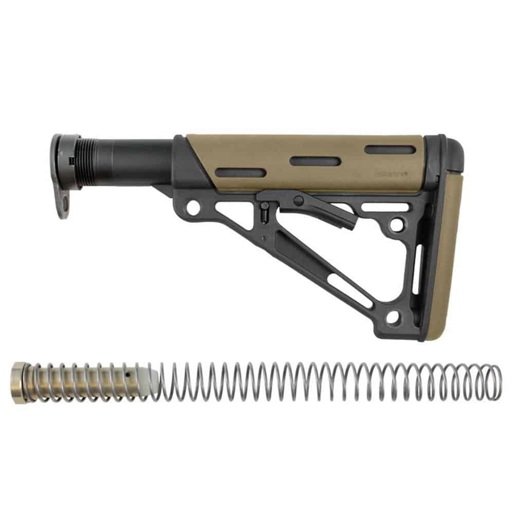 Hogue AR-15/M-16 OM Collapsible Buttstock Assembly with Buffer Tube and Hardware-Desert Tan Rubber