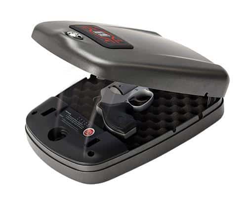 New with the KP model is the keypad that offers a secondary entry method where the user can program a 4 to 6 digit security code in addition to the RFID-enabled access methods. Available in two sizes the 2600KP and 2700KP offer convenient tamper-proof security for handguns and other valuables. Made of thick 14 gauge steel each safe exceeds ASTM International safety standards for child and pry resistance lock strength and hinge attack resistance. AC and battery power ensures that valuables are protected and ready to go 24/7. Plus there are pre-drilled holes for mounting or a 1500-lb rated cable to secure to stationery objects.