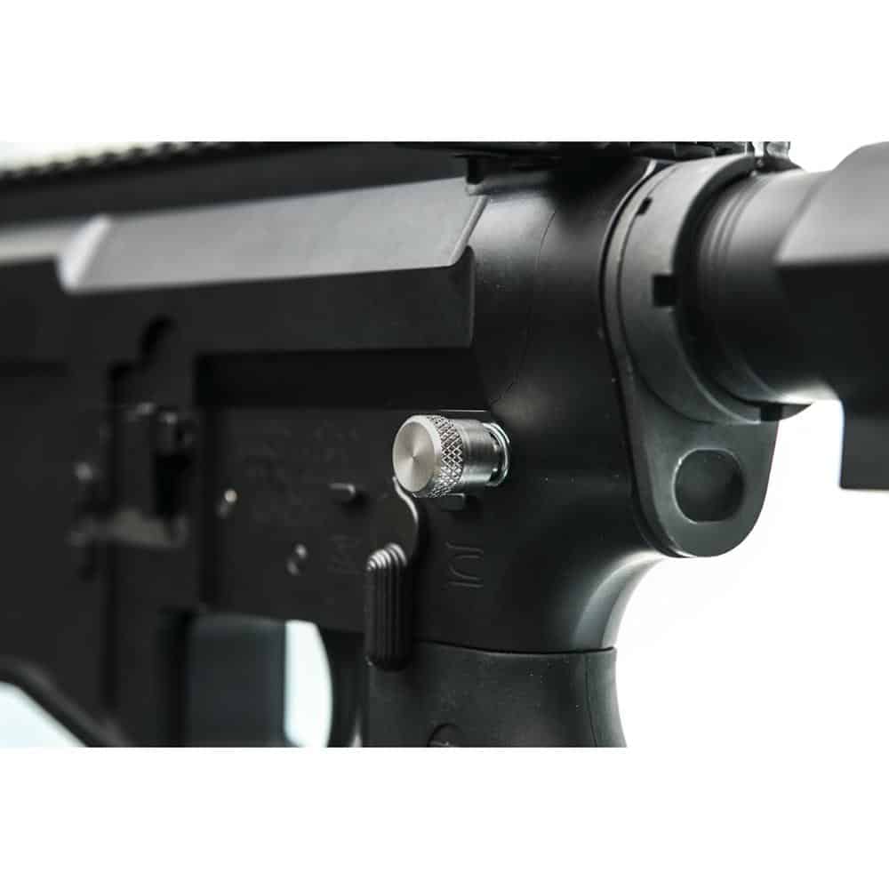 One of the features that sets Juggernaut Tactical apart is our modified quick-release takedown pin which acts as a button to separate the upper from the lower just enough to disengage semi-automatic operation and automatically disable the magazine lock. Once your upper is separated and disengaged from semi-automatic operation your magazine release is now operable. A simple tap closes the upper and re-engages the spring-loaded takedown pin and will quickly get you back in the fight. AR-10 Kit will work with either back or bottom-fed detent.