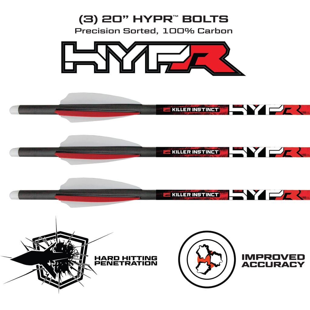 The Killer Instinct Vital-X 405 Crossbow Kit delivers high-performance accuracy with a compact, maneuverable frame perfect for tight shooting situations. Featuring the synchronized X Cam system with an impressive 56 percent let-off, it reduces draw effort while enhancing shot smoothness and minimizing vibration. Clocking in at 405 feet per second with 142 foot-pounds of kinetic energy, this crossbow is both powerful and efficient. Measuring just 6.75 inches axle-to-axle when cocked, the Vital-X is easy to shoulder and shoot in any environment. The included DSC Silent Crank makes cocking nearly effortless and whisper-quiet. The complete Pro Package equips you with everything you need, including a Lumix 4×32 scope, quiver, HYPR bolts, and more.