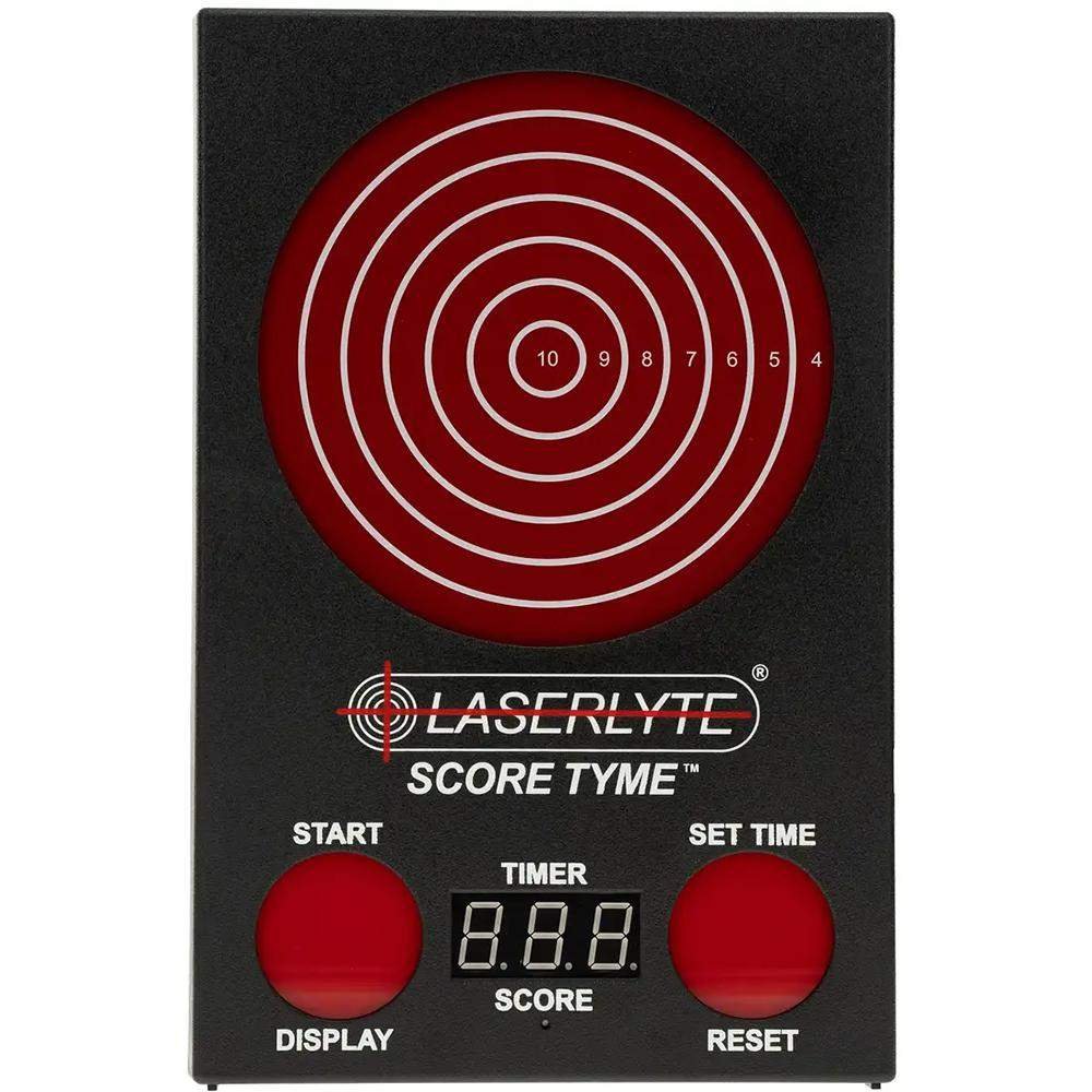 The LaserLyte Score Tyme Laser Training Kit is a fun simple way to practice before heading out to the range. These Laser Trainers feature 147 LEDs scoring functions timer options and twice the target size of LaserLyte's original Laser Training Target. The LaserLyte Score Tyme Shooting Trainer target is 13 inches tall and includes a 3-digit LED display for timer and scorekeeping.