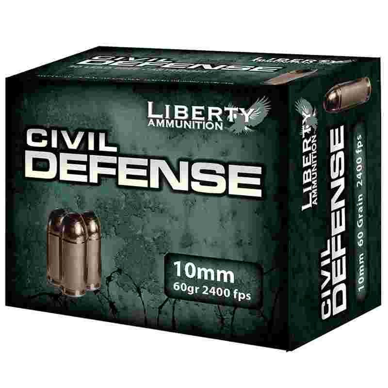 Despite the light weight projectile it will penetrate soft targets deeper than expected. Liberty Ammunition’s Civil Defense 10mmAuto ammunition also known as Liberty Civil Defense 10mm is an excellent choice for use as self-defense ammunition and it provides more than enough power to do the job using the Civil Defense Ammo 10mm.