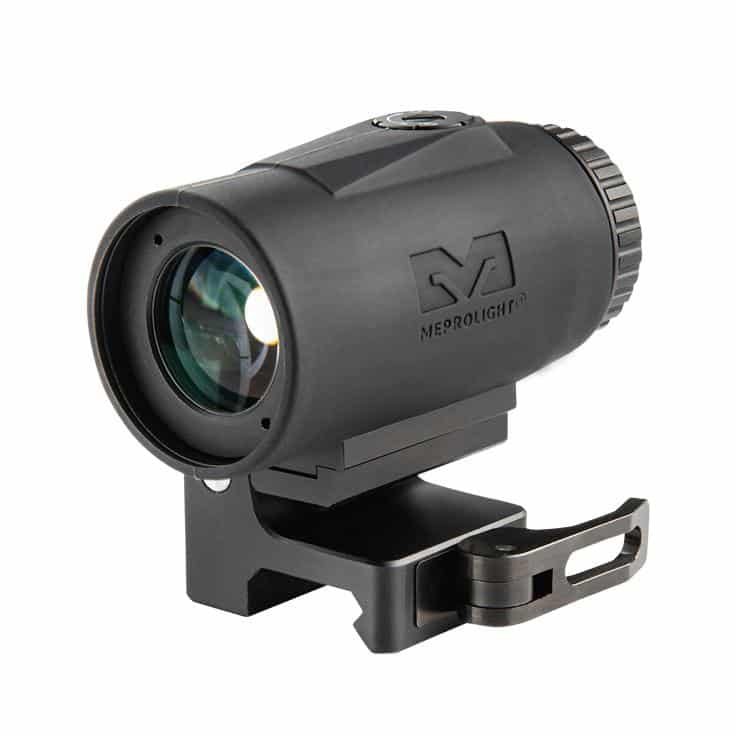 The Mepro MMX4 micro magnifier attach to any MIL-STD-1913 rail directly behind your optic. When not in use the Mepro MMX4 can be "flipped" out of the way by depressing a pushbutton.