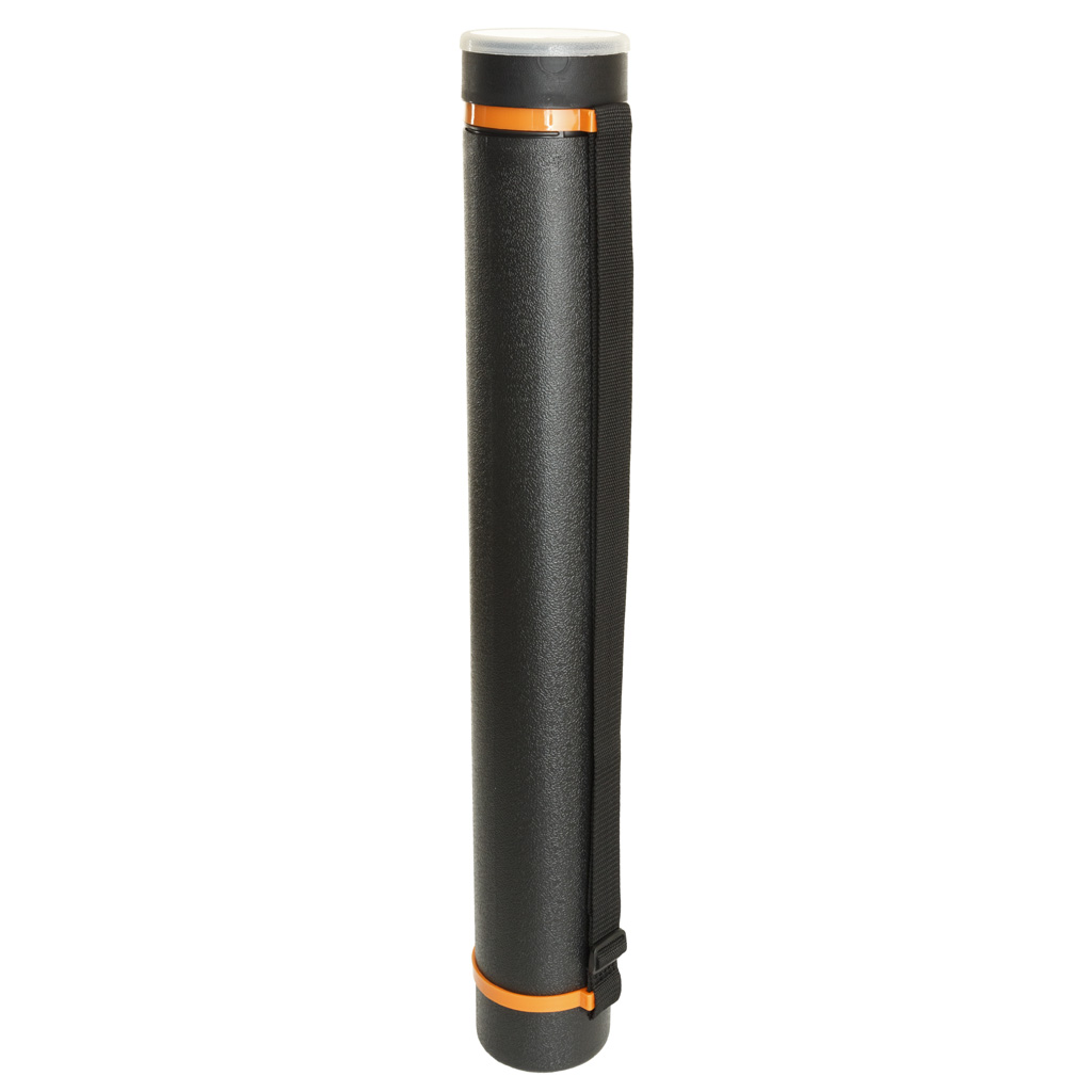 Portable arrow tube with 12-arrow holder. Adjusts to fit any arrow length. Features adjustable length shoulder strap.
