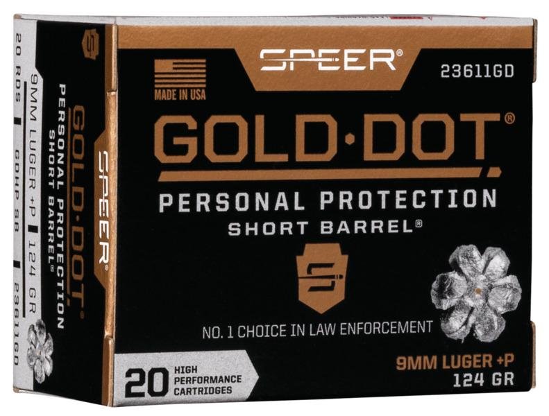 Speer Gold Dot Short Barrel Handgun Ammunition 9mm Luger (+P) 124 gr HP 1150 fps 20/ct